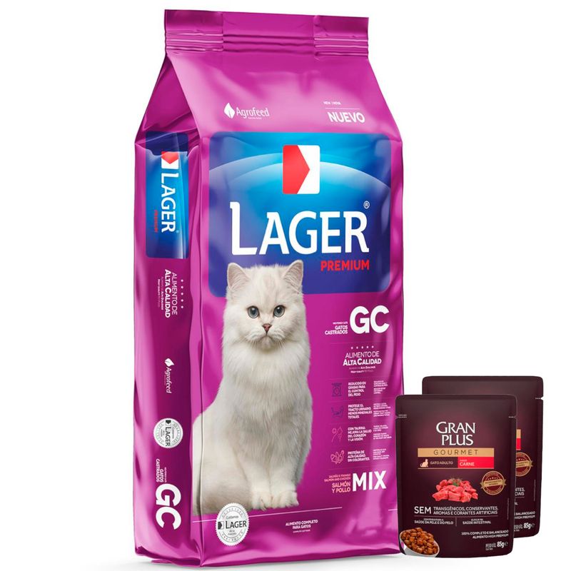 Lager Gato Castrado es un alimento completo y balanceado diseñado para gatos castrados.
