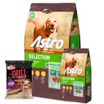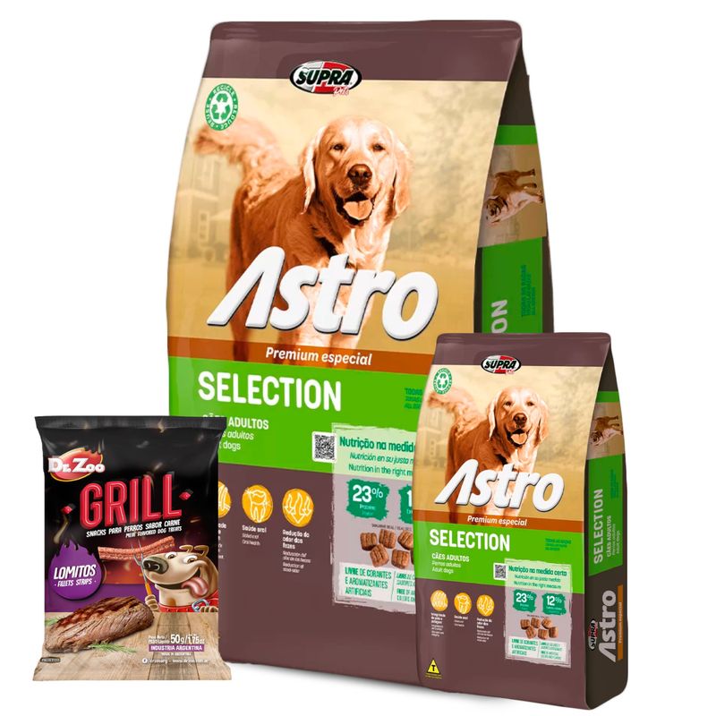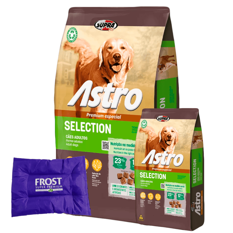 Astro Premium para animales no contiene ni colorante ni aromatizantes artificiales. Atiende a todas las etapas de la vida, desde el cachorro, adulto y senior. Astro ofrece nutrición adecuada y equilibrada para su mascota. Compuesta por 5 productos para perros, que atiende todas las etapas de crecimiento, y ahora agregando un producto para gatos. Se la formula con selección de proteínas, contiene fibras especiales, e incluye omega 3 y 6 en su formulación. Indicado para adultos de 1 a 7 años.