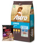 Para perros cachorros. La ración para perros Astro Junior es un alimento premium especial para su perro cachorro. Completo y balanceado, producido a partir de ingredientes que combinan una selección de proteínas, además de la leche integral en polvo, omegas 3 y 6, minerales orgánicos y prebióticos. PRESENTACIÓN: 14kg