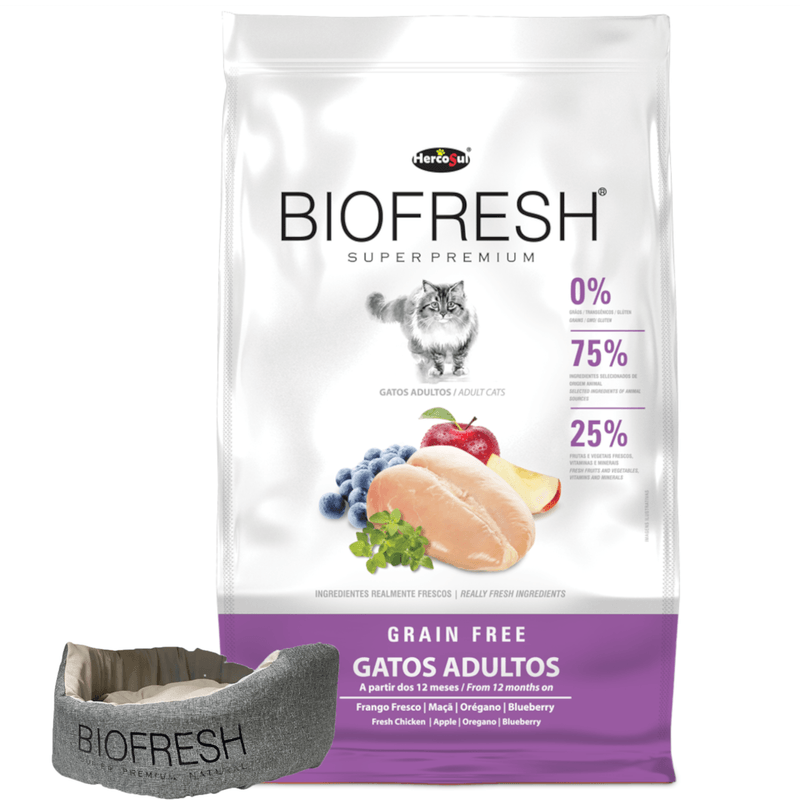Biofresh Super Premium Grain Free para Gatos Adultos: Nutrición Natural y Fresca¡Dale a tu gato una alimentación de calidad superior! Biofresh Super Premium está formulado con ingredientes frescos y naturales, diseñados para maximizar la salud y el bienestar de tu gato adulto. Su fórmula Grain Free (sin granos) promueve una digestión eficiente, fortalece el sistema inmunológico y mantiene un pelaje brillante y saludable.