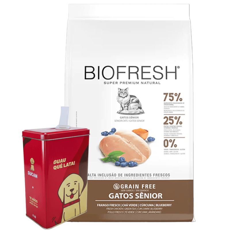 Biofresh Super Premium Fresh Pollo, Té Verde, Cúrcuma y Arándanos para Gatos Mayores Biofresh Super Premium Fresh Pollo, Té Verde, Cúrcuma y Arándanos para Gatos Mayores favorece la salud bucal, ayudando a prevenir enfermedades en dientes y encías; nutrientes que favorecen la formación de heces más firmes y con menos olor; ayuda en el mantenimiento y la belleza del cabello, promoviendo hebras más brillantes y sedosas; contribuye a la salud del tracto urinario a través de una alta concentración de minerales.