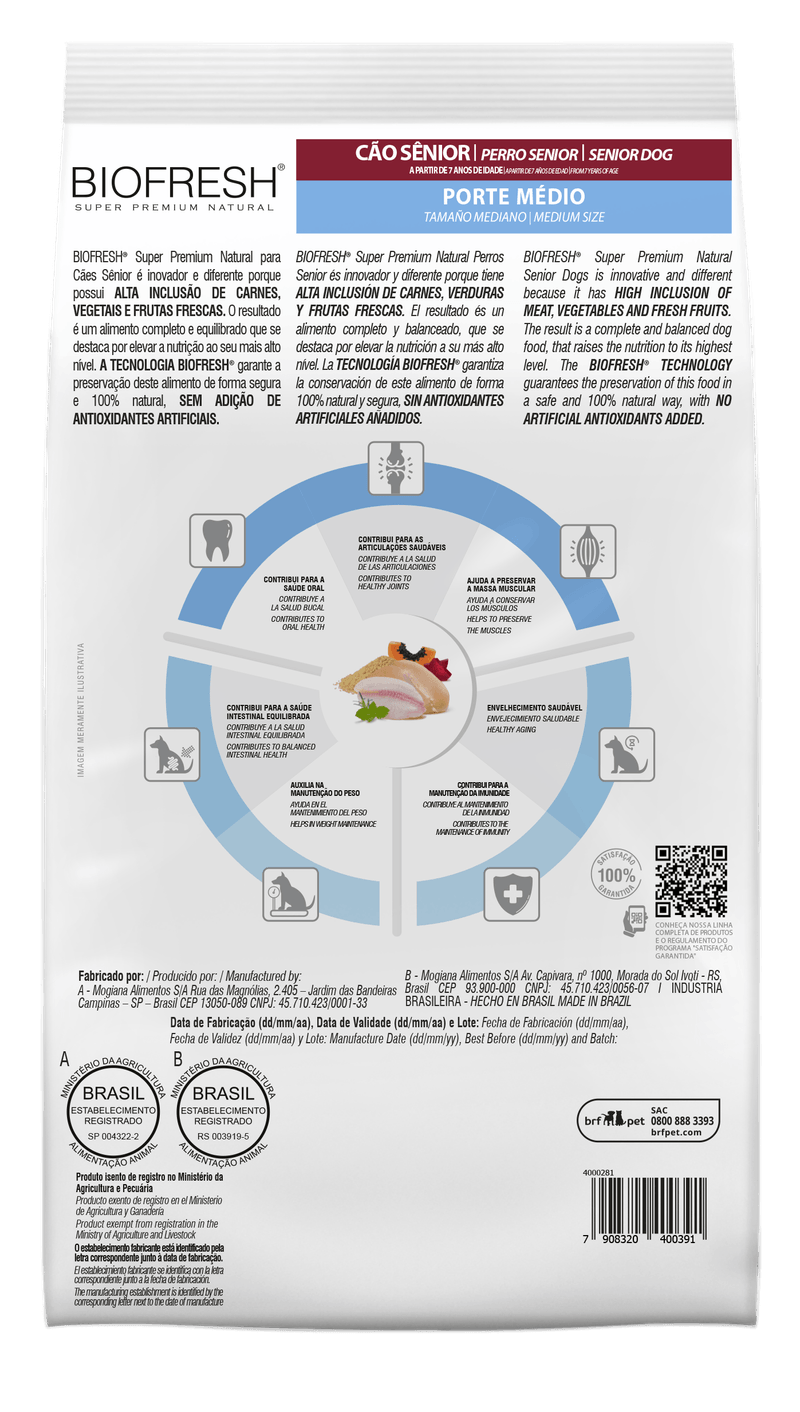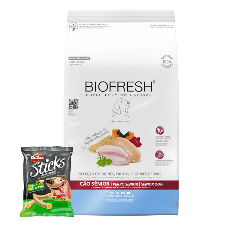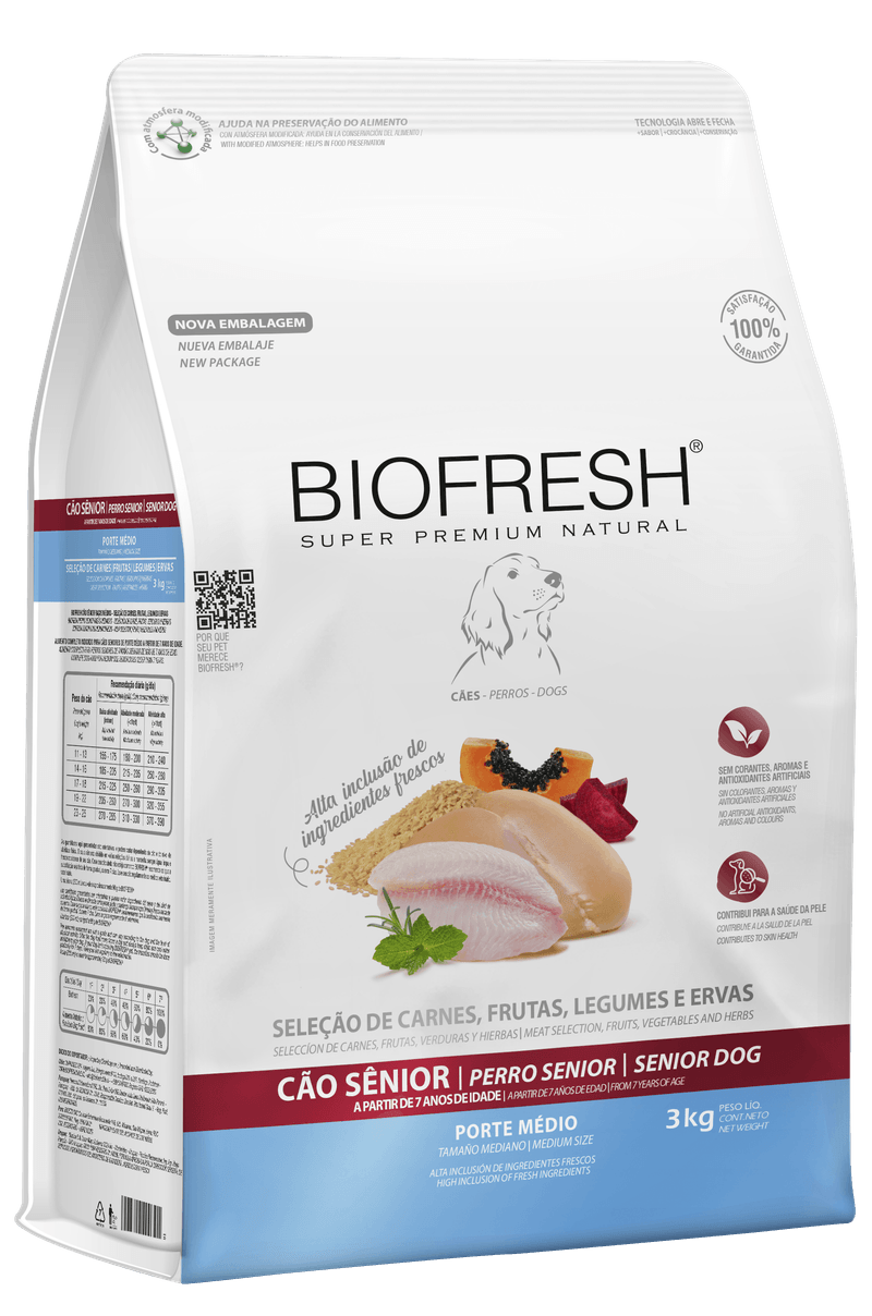 Biofresh Super Premium Senior: Nutrición Óptima para Perros Mayores de Razas MedianasInnovación y Frescura Natural:Biofresh Super Premium Senior se destaca por su alta inclusión de ingredientes frescos y naturales, directamente de la naturaleza. Este alimento completo y equilibrado está diseñado para satisfacer las necesidades nutricionales de perros mayores de razas medianas, ayudando a preservar su vitalidad y salud. La tecnología Biofresh garantiza la conservación natural y segura del alimento, sin conservantes artificiales.