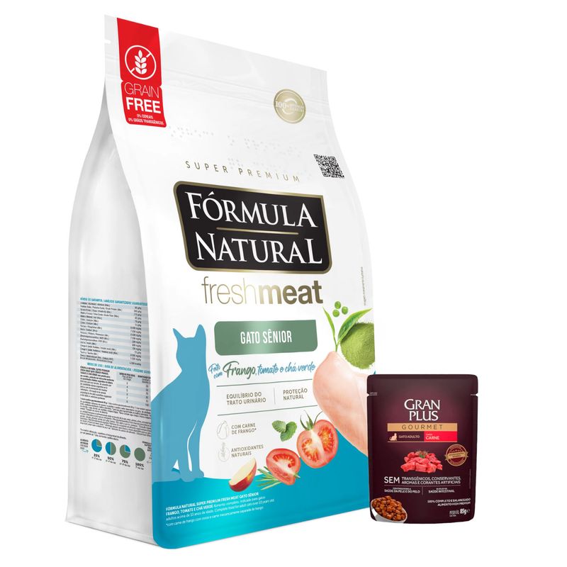 Sobre el regalo: El de la imagen es el plan A… pero a veces se nos vuela del stock. Si eso pasa, te vamos a contactar para enviarte otro regalo igual de lindo. ¡Prometido!*El regalo de la imagen viene de manera unitaria dependiendo del stock.Fórmula Natural Fresh Meat Gato Senior- Hecho con Pollo, Tomate y Té verde