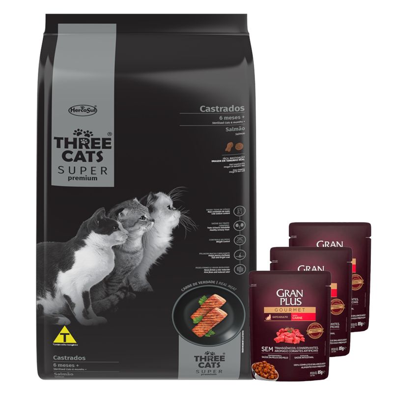 - 10%Three Cats Super Premium - Gato Castrado (Salmón) + Regalo! 15 Kg10,1 Kg3 Kg$ 4.150,00De$ 4.150,00Para$ 3.735,00O 12 x de $ 311,25sin interesesCantidad+-10.000 disponiblesAgregar al carrito