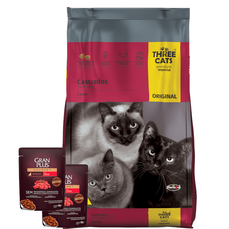 - 10%Three Cats Original - Gato Castrado (Carne) + Regalo! 15 Kg10,1 Kg1 Kg$ 3.150,00De$ 3.150,00Para$ 2.835,00O 12 x de $ 236,25sin interesesCantidad+-10.000 disponiblesAgregar al carrito