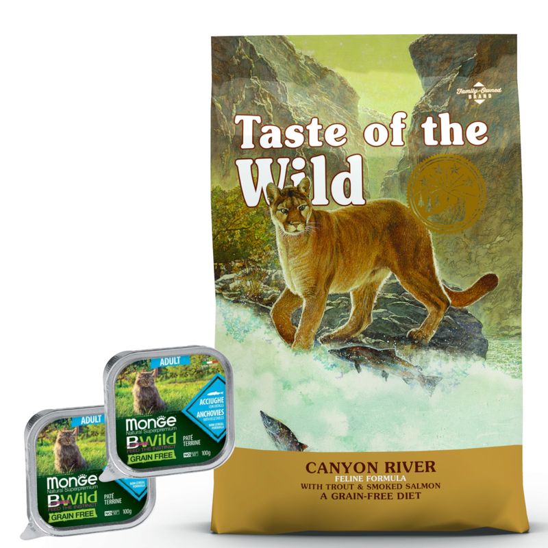 Taste of the Wild - Gato - All Life Stages - Canyon River (Grain Free - Trucha/Salmón) + Regalo! 6,6 kg2 Kg$ 3.890,00O 12 x de $ 324,16sin interesesCantidad+-10.000 disponiblesAgregar al carrito
