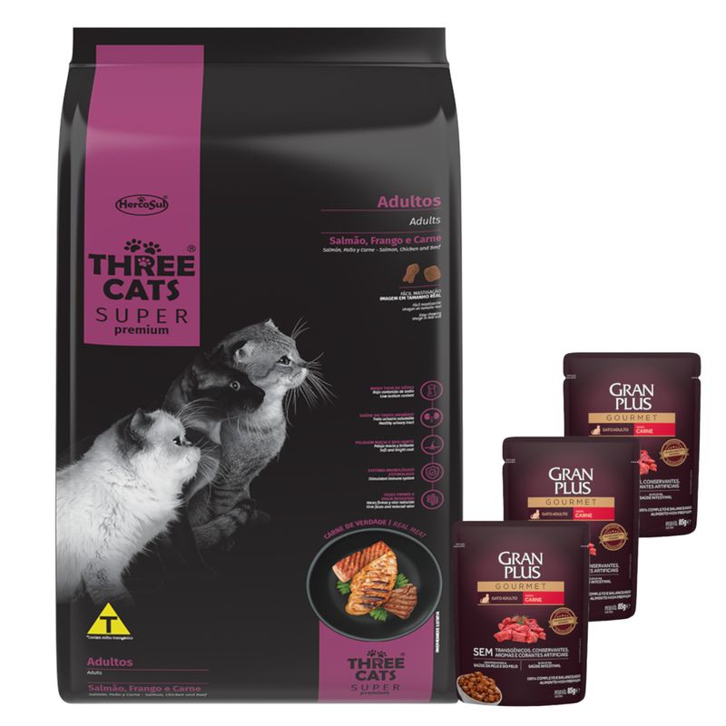 - 10%Three Cats Super Premium - Gato Adulto (Salmón, Pollo & Carne) + Regalo! 15 Kg3 Kg$ 4.150,00De$ 4.150,00Para$ 3.735,00O 12 x de $ 311,25sin interesesCantidad+-10.000 disponiblesAgregar al carrito