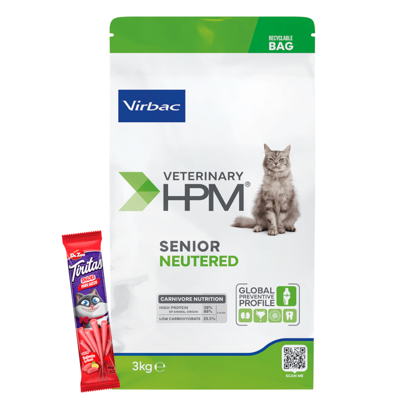 Este alimento está especialmente formulado para gatos esterilizados de edad avanzada, a partir de los 10 años, considerando los cambios fisiológicos y las necesidades nutricionales específicas de esta etapa de la vida.