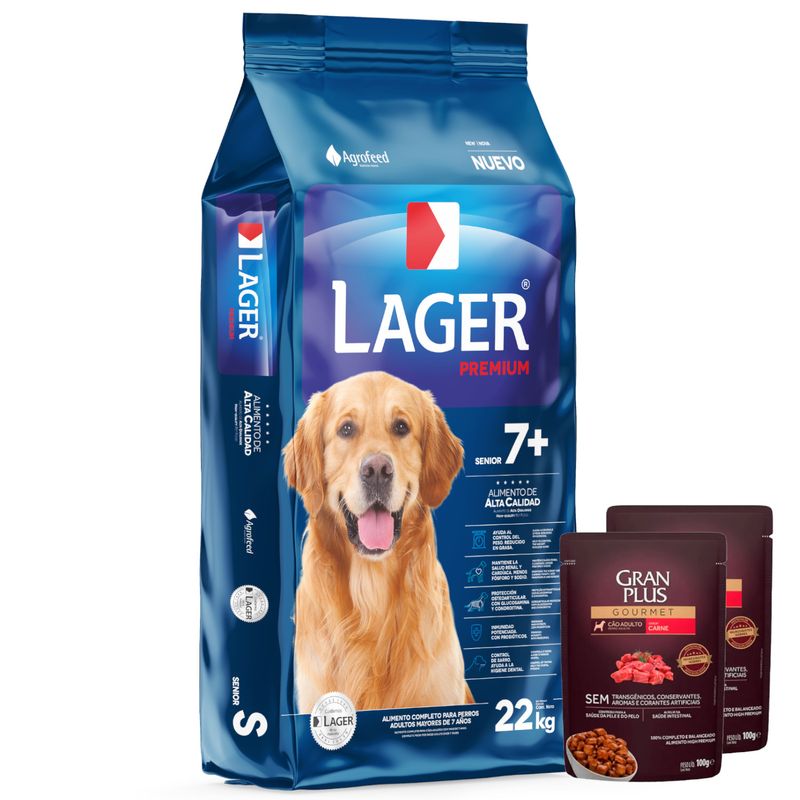 Lager Senior es un alimento diseñado para perros mayores de 7 años o con sobrepeso.
