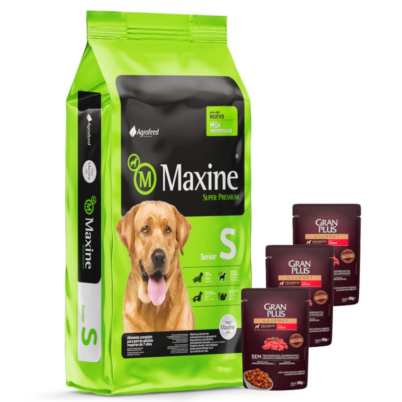 Alimento Super Premium Completo para Perros Adultos Mayores de 7 años en base de Pollo y Arroz. - Maxine es un alimento de industria uruguaya de calidad Premium.