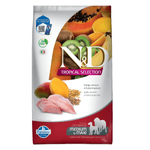 N&D Tropical Selection Adult Medium & Maxi de Farmina es un alimento seco premium formulado especialmente para perros adultos de razas medianas y grandes. Su receta está basada en pollo como principal fuente de proteína, combinada con cereales seleccionados y una exclusiva mezcla de frutas tropicales, que aportan antioxidantes naturales y mejoran la palatabilidad.