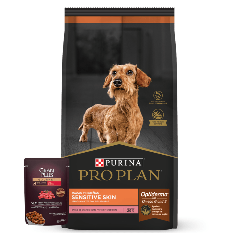Cada taza (200 ml) contiene aproximadamente 90 g de PURINA® PRO PLAN® Sensitive Skin Dog Razas Pequeñas. Cuando cambie la alimentación, hágalo en un plazo de 7 a 10 días. Esto le ayudará a prevenir problemas digestivos.